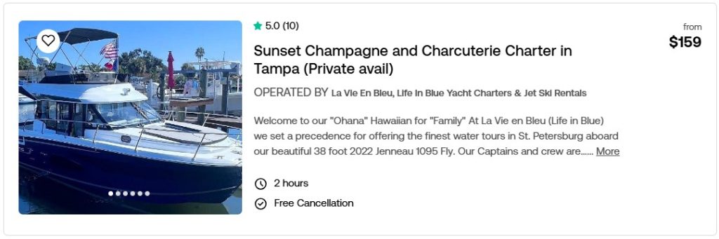 Sunset Champagne and Charcuterie Charter in Tampa (Private avail.)