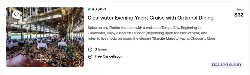 Clearwater Evening Yacht Cruise with Optional Dining