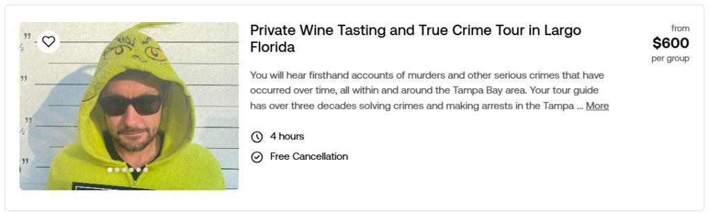 Private Wine Tasting and True Crime Tour in Largo Florida