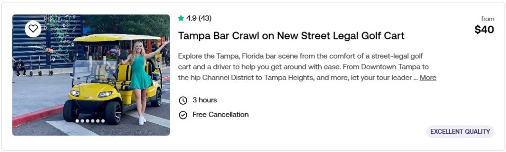 Tampa Bar Crawl on New Street Legal Golf Cart