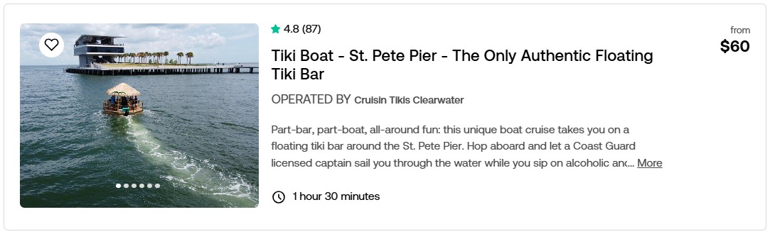 Tiki Boat – St. Pete Pier – The Only Authentic Floating Tiki Bar